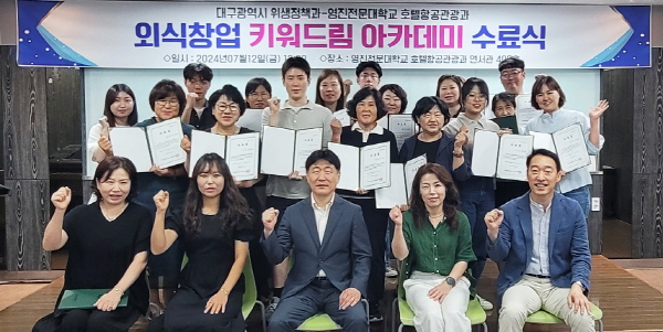 대구시 위생정책과와 영진전문대학교 호텔항공관광과가 개설한 ‘외식창업 키워드림’ 아카데미 9기 교육생을 이달 31일까지 모집한다. 지난 수료식 모습 (사진 = 영진전문대학교)