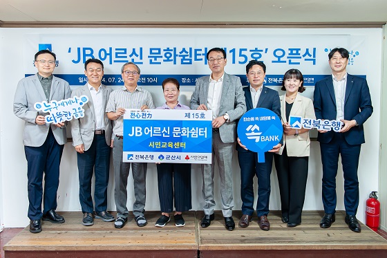 (전북=NSP통신) 김광석 기자 = JB금융그룹 전북은행(은행장 백종일)이 24일 군산 시민교육센터에서 ‘JB어르신 문화쉼터 제15호’ 오픈식을 실시했다고 25일 밝혔다.