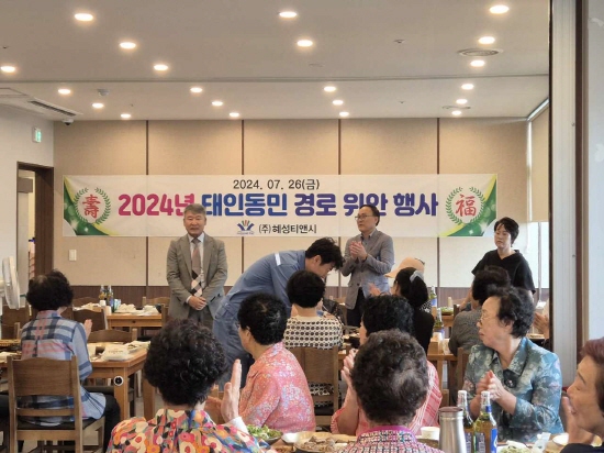 (전남=NSP통신) 김성철 기자 = 광양시는 지난 26일 광양시 태인동 소재 기업인 혜성티앤시(대표 김영조)가 태인동 어르신 50여 명을 모시고 ‘경로 위안 잔치’를 열었다고 알렸다.