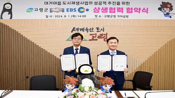 이남철 고령군수와 EBS 김성동 부사장 등 주요 관계자들이 참석한 이번 협약식에서 두 기관은 상호신뢰와 협력을 바탕으로 지속가능한 상생 발전을 위해 협력하기로 했다.