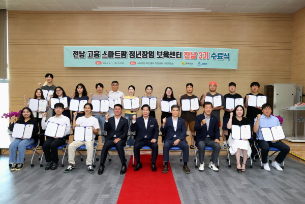 (전남=NSP통신) 남정민 기자 = 전남 고흥군(군수 공영민)은 지난 1일 전남 고흥 스마트팜 혁신밸리 청년창업 보육센터 전남 3기 교육생(43명)의 수료식을 성황리에 개최했다고 밝혔다.