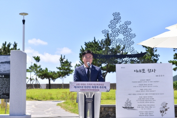 (전남=NSP통신) 서순곤 기자 = 여수시와 이야포 미군폭격사건 위령사업 추진위원회가 2일 남면 안도 이야포 평화공원에서 ‘74주년 민간인 희생자 추모제’를 가졌다.