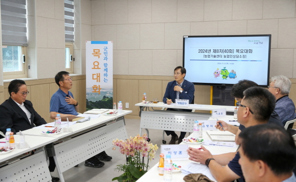 (전남=NSP통신) 강현희 기자 = 우승희 영암군수가 지난 8일 농업기술센터에서 농업 현장 최일선에서 기술지원을 담당하고 있는 농업인상담소장들과 ‘목요대화’를 열고 이야기를 나눴다.