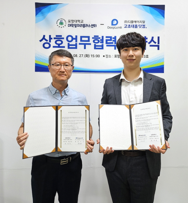 디플에이치알은 이번 협약을 통해 포항대학교 재학생들을 위한 지역 기반 데일리 채용공고 등 다양한 취업 정보를 제공하고, 인재와 기업의 매칭률을 높이고 지역 사회의 구직·구인난 해소를 위해 목표로 하기로 했다.