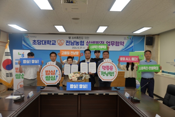 (전남=NSP통신) 김용재 기자 = 농협전남본부(본부장 박종탁)는 지난 27일 초당대(총장 박종구·광주전남지역대 총장협의회장)와 쌀 소비촉진을 위한 업무협약을 체결했다.