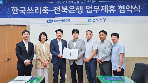 (전북=NSP통신) 김광석 기자 = JB금융그룹 전북은행(은행장 백종일)은 6일 국내 대표적인 특장 및 가변축 제조업체인 한국쓰리축(대표 유구현)과 상호 협력을 통한 공동 성장을 모색하기 위한 포괄적 마케팅 및 금융업무 제휴 협약을 체결했다고 밝혔다.