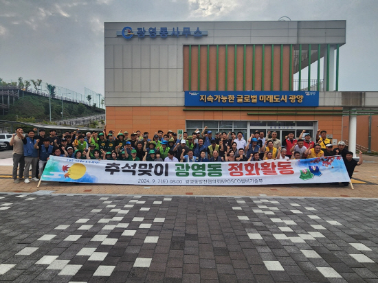 (전남=NSP통신) 김성철 기자 = 광양시는 지난 7일 광영동 발전협의회 회원들과 포스코 설비기술부 직원들이 광영동민들과 귀성객들이 즐거운 추석 명절을 보낼 수 있도록 광영동 환경정화 활동을 진행했다고 알렸다.