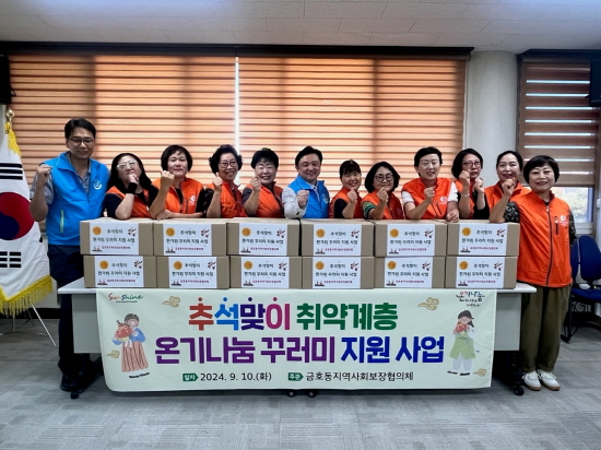 임선임 맞춤형복지팀장은 “금호동 취약계층을 위해 매년 명절마다 이웃 사랑과 나눔을 실천해주시는 금호동 지역사회보장협의회 위원들께 감사드린다”며 “앞으로도 다양한 나눔 활동을 통해 복지 사각지대에 놓인 지역주민에게 힘이 되겠다”고 말했다.