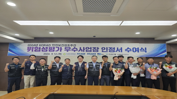 12일은 코라솔, 고도기술 등 6개 협력업체에 위험성평가 우수사업장 인정서 전달식을 개최했으며, 방폐장 1단계 처분시설과 2단계 건설현장 등에 대한 안전점검을 실시했다.