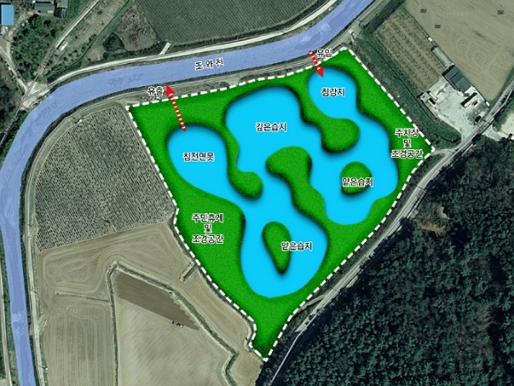 이에 따라 조와동 일원에 배수면적 292.1ha, 시설용량 1만4606㎥, 시설면적 2만1910㎡ 규모의 인공습지를 조성할 계획이다.