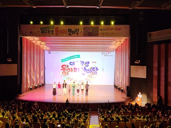 14일 오전 대구학생문화센터 대공연장에서 열린 개막식에서는 ▲관광고 난타 ▲효신초 치어리딩 ▲가창중 뮤지컬 갈라 콘서트 ▲범어초 중창, 그리고 지속가능한 가족공동체 형성의 의미를 담아 학생, 학부모, 교사가 함께하는 ▲용지초 다품맨발합창단 공연이 진행됐다.
