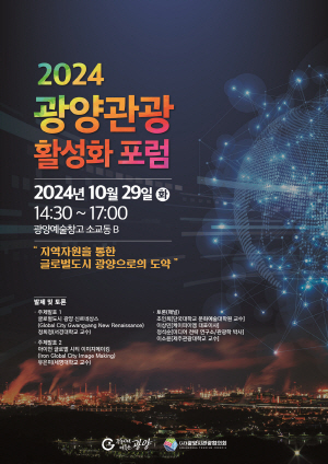 광양시는 10월 29일 오후 2시 광양예술창고 소교동B에서 ‘광양관광 활성화 포럼’이 개최된다고 밝혔다.
