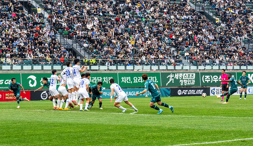 김포는 27일 김포솔터축구장에서 열린 하나은행 K리그2 2024 36라운드 경기에서 수원과 0대 0 무승부를 기록했다. 전날 상위팀들이 패한 상황에서 이날 김포가 이겼다면 4위로 치고 올라가 승강플레이오프 싸움에 유리한 고지를 차지했을 것이지만 아쉽게 무승부에 그치고 말았다.