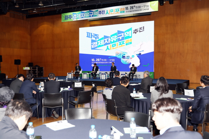 포럼은 김갑성 연세대학교 도시공학과 교수를 좌장으로 유승경 전(前) 경기도 경제과학 진흥원 원장, 이상훈 경기연구원 명예연구위원, 홍진기 산업연구원 명예 연구위원이 참여한 공개토론회로 형태로 진행됐고 경제자유구역 지정의 필요성과 파주시의 발전 방향을 주제로 시민들과 소통했다.