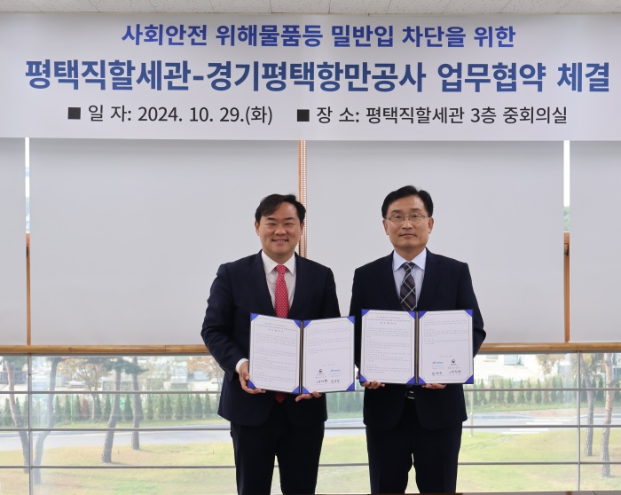 (경기=NSP통신) 김병관 기자 = 경기 평택직할세관(세관장 양승혁)은 29일 외국항행 후 국내 기항하는 요트 및 모터보트를 통한 마약‧총기류 등 사회안전 위해물품 차단을 위해 제부마리나의 관리주체인 경기평택항만공사와 상호 협력 업무협약(MOU)을 체결했다.