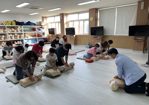 포항 선린대학교 재난안전공유협업센터는 지난 26일 사랑관 301호에서 경상북도 내 초·중·고등학교 재학생 가족을 대상으로 심폐소생술 및 응급처치 교육을 실시했다. (사진 = 포항 선린대학교)