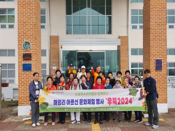 (경북=NSP통신) 조인호 기자 = 구미도시공사 산동하수처리팀은 지난 10월 30일 인근 농촌지역 어르신들과 함께 지역소멸 극복 동참을 위한 문화 체험 행사를 진행했다.
