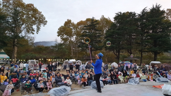 사라실예술촌은 ▲친환경 설거지 비누 만들기 ▲재활용품을 활용한 캠핑장 꾸미기 체험 ▲보드게임 ▲자연미술활동 부스 ▲버블풍선아트 공연 ▲영화상영 ▲불멍타임 등 다양하고 알찬 프로그램을 마련했다.