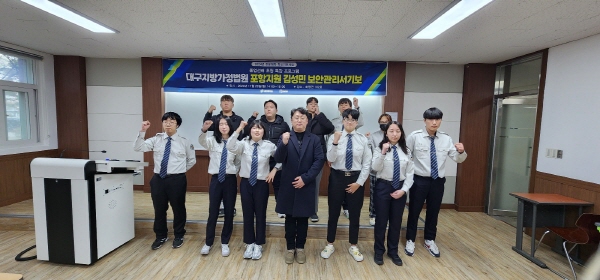(경북=NSP통신) 조인호 기자 = 포항 선린대학교(총장 곽진환) 경찰보안무도과는 25일 화평관 102호에서 본과를 졸업한 선배인 대구지방·가정법원 포항지원 보안관리직 공무원으로 근무하고 있는 김성민 선배(2016년 졸업)를 초청해 ‘산업체 실무자 특강’을 실시했다.
