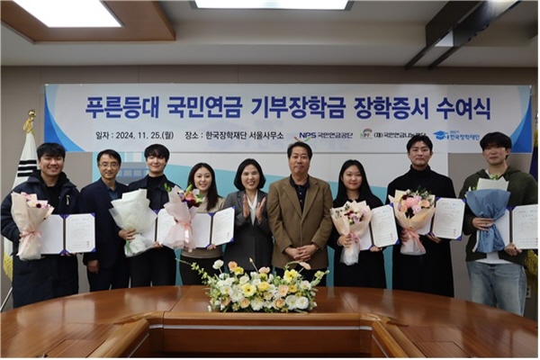 (경북=NSP통신) 김대원 기자 = 한국장학재단(이사장 배병일)과 국민연금공단(이사장 김태현), 국민연금나눔재단(이사장 강흥구)은 지난 25일 한국장학재단 서울사무소에서 2024년 2학기 푸른등대 국민연금 기부장학금 장학증서 수여식을 개최했다.