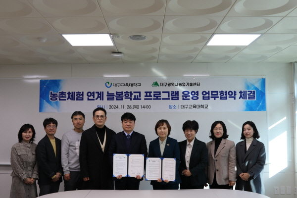 (경북=NSP통신) 김대원 기자 = 대구교육대학교(총장 배상식)는 대구광역시농업기술센터(소장 오명숙)와 지난 28일 대구교육대학교에서 농촌체험 연계 늘봄학교 프로그램 운영을 위한 상호 업무협약(MOU)을 체결했다.