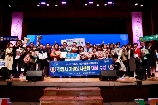 (전남=NSP통신) 김성철 기자 = 광양시는 지난 4일 전남도청 김대중 강당에서 열린 ‘2024 전라남도 자원봉사자 대회’에서 시·군 자원봉사센터 평가 대상을 수상했다고 밝혔다.