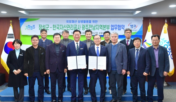 (전남=NSP통신) 김용재 기자 = 장성군과 한국자산관리공사 광주전남지역본부가 지난 16일 장성군청에서 ‘국유재산 상생활용을 위한 업무협약’을 체결했다.
