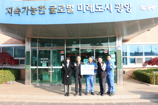 (전남=NSP통신) 김성철 기자 = 광양시는 지난 17일 피앤오케미칼(대표 김종국)이 후원금 100만 원을 태인동지역사회보장협의체(공공위원장 배록순, 민간위원장 이은재)에 지정 기탁했다고 밝혔다.