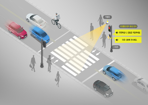횡단보도를 건너려는 보행자가 안전지역을 벗어나 무단횡단을 시도하면 '위험하오니 인도로 이동하세요'라는 음성 메시지로 위험을 알려주고 녹색신호 잔여 시간이 보행자가 건너야 할 거리에 비해 부족한 경우에는 '다음 신호에 건너세요'라는 음성 안내를 내보낸다.
