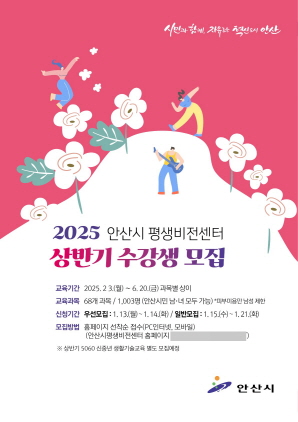(경기=NSP통신) 김병관 기자 = 경기 안산시(시장 이민근)는 오는 13일부터 24일까지 2025년 상반기 평생비전센터 교육 수강생을 모집한다.