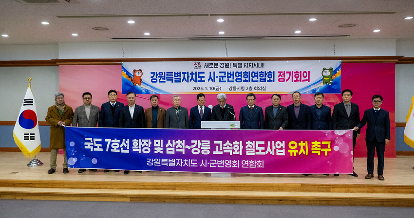 (강원=NSP통신) 조이호 기자 = 강원특별자치도시군번영회연합회(연합회장 정준화)가 10일 강릉시청 2층 회의실에서 국도 7호선 확장 및 삼척-강릉 간 고속화 철도사업 유치를 촉구하는 결의문을 발표했다.