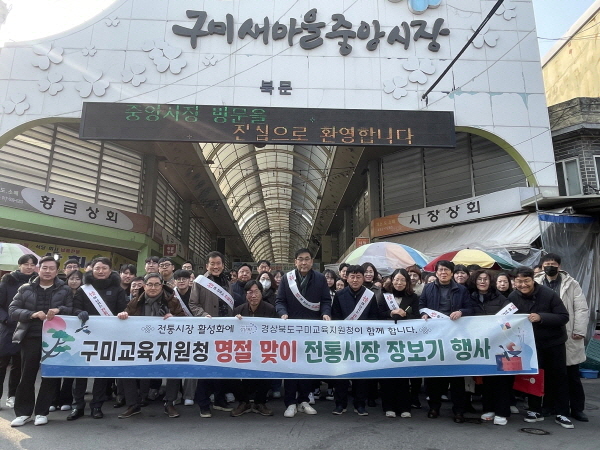 (경북=NSP통신) 김대원 기자 = 구미교육지원청(교육장 남성관)은 20일 민족 고유의 명절인 설날을 앞두고 지역 경기와 전통시장의 활성화를 위해 구미새마을중앙시장에 방문해 설 맞이 장보기 행사를 실시했다.