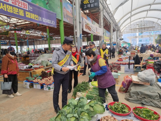 (전남=NSP통신) 김성철 기자 = 광양경찰서(서장 송기주)는 설 명절을 앞두고 광양5일시장을 방문해 치안 상태를 점검하고 민·경 합동 캠페인 및 순찰을 펼쳤다.