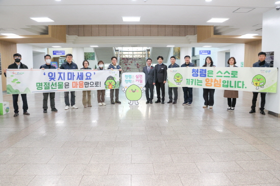 캠페인 참여자들은 명절 분위기에 편승해 관행적으로 선물을 주고받는 행위로 인해 발생할 수 있는 공직 비리를 사전에 차단하고 공직자 스스로 청렴 의지를 다지기 위해 ‘명절 선물은 마음만으로 충분하다’라는 메시지를 출근하는 공직자들에게 전달했다.