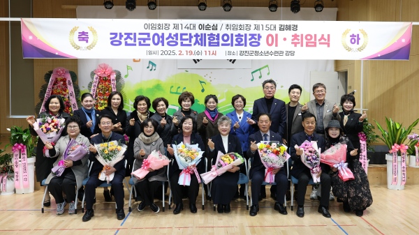 (전남=NSP통신) 김용재 기자 = 강진군 여성단체협의회가 지난 19일 청소년수련관 강당에서 제14대·15대 회장의 이·취임식을 개최했다.