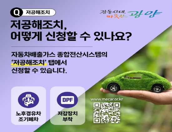 황광진 환경과장은 “깨끗하고 쾌적한 대기환경 조성을 위한 사업인 만큼 노후 경유차 소유자들의 적극적인 참여를 바란다”고 말했다.