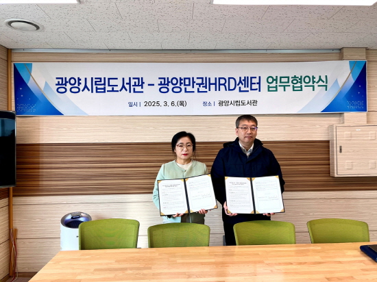 (전남=NSP통신) 김성철 기자 = 광양시는 지난 6일 광양시립도서관과 광양만권HRD센터가 지역 청년을 지원하는 사업의 상호 협력 기관의 업무 활성화를 위한 업무협약을 체결했다고 밝혔다.