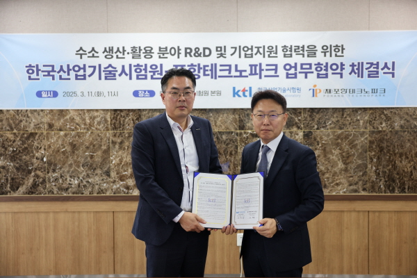 특히 포항TP가 운영하는 수소연료전지 인증센터와 KTL의 시험·인증 역량을 연계해 기업 지원을 확대하고 국내 수소 산업 경쟁력 강화를 위해 협력을 강화할 계획이다.