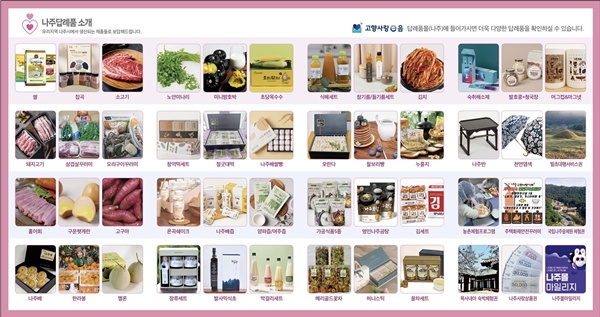 (전남=NSP통신) 김용재 기자 = 나주시(시장 윤병태)가 고향사랑기부제 답례품 선정위원회를 통해 8개 공급업체에서 제공하는 24개 신규 품목을 추가 선정했다.