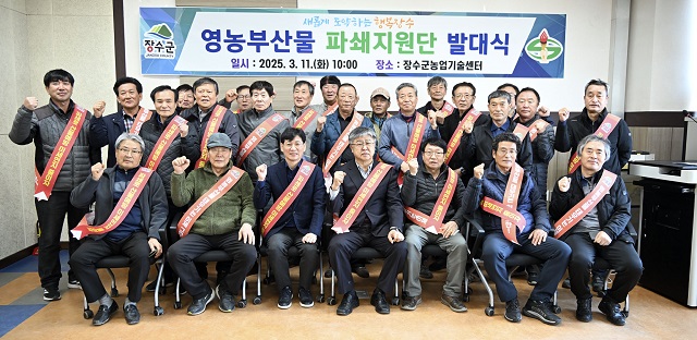 (전북=NSP통신) 김광석 기자 = 전북자치도 장수군은 영농부산물 안전처리 지원사업의 본격적인 추진에 앞서 지난 11일 농업기술센터에서 영농부산물 파쇄지원단 발대식을 가졌다고 밝혔다.
