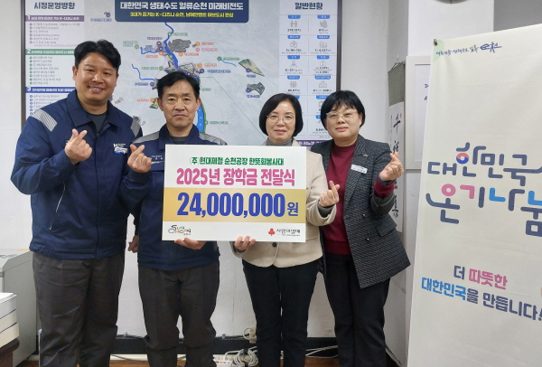 (전남=NSP통신) 강현희 기자 = 현대제철 순천공장 한뜻회 봉사대(회장 김종락)는 지난 12일 지역 저소득 초·중·고 재학생들을 위해 순천시에 장학금을 기탁했다고 밝혔다.