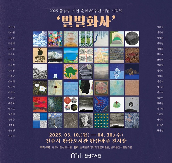 ‘별별화사’ 전시는 전주시 완산도서관 1층 완산마루에서 3월 10일부터 4월 30일까지 진행되며, 특히 4월 19일에는 원광대 대학원 음악문화학과 및 창의문화융합계열 글로벌문화예술융합전공 학생들이 함께하는 특별 축하공연도 펼쳐진다.