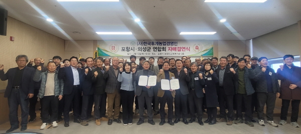 포항시 농업인교육복지관에서 개최된 협약식에는 한국후계농업경영인포항시연합회(회장 김성훈)와 한국후계농업경영인의성군연합회(회장 노해석) 회원 70여 명이 참석한 가운데 지역 간 농업인들의 상호 교류와 협력으로 농업 발전과 지역 경제 활성화를 도모키로 했다.