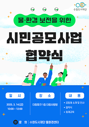 (경기=NSP통신) 조현철 기자 = 경기 수원도시재단(이사장 이병진)이 시민들이 직접 환경보호 활동에 참여하고 지속 가능한 환경보전을 위한 시민공모사업 협약식을 진행했다.