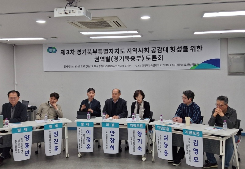 (경기=NSP통신) 김병관 기자 = 경기도와 경기북부특별자치도 설치 민관합동추진위원회 도민협력분과(위원장 김규봉)는 13일 의정부시 소재 경기도공익활동지원센터에서 경기북중부 지역 시민사회단체와 경기북부특별자치도 설치를 위한 토론회를 개최했다.