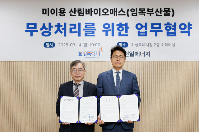 조승문 화성시 제2부시장은 “이번 협약은 미이용 산림바이오매스 활용 확대를 통해 예산 절감과 탄소중립을 실현하는 본보기가 될 것”이라며 “화성특례시는 지속가능한 친환경 도시로의 도약을 위해 친환경 에너지 전환의 선순환 구조를 구축해나가겠다”고 말했다.