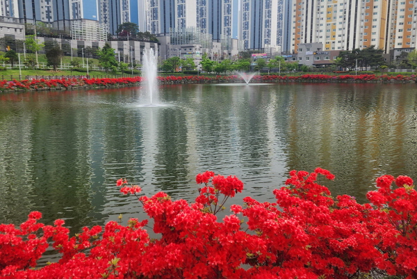 공원 내 호수는 수온 상승으로 수질이 탁해질 것을 대비해 정화시설과 수경시설을 조기에 가동한다.
