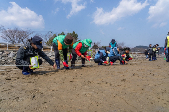 행사는 광양시와 서해지방해양경찰서, 여수해양경찰서, 포스코이앤씨, 월드비전, 진월면 발전협의회 등 사회단체 50여 명이 참여해 바다에서 숲의 역할을 하는 다양한 생태계인 블루카본 조성으로 탄소 저감원을 확보하고 섬진강의 아름다운 갯벌 생태계 보존을 위해 토종 염생식물인 칠면초, 해홍, 함초 종자 총 35Kg를 전문가의 안내에 따라 파종했다.