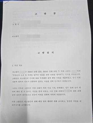고발인 B씨는 C씨가 지난해 10월 25일과 12월 10일 두 차례 특정인에 대해 민원을 제출하라고 강요했다고 주장했다. 당초 B씨는 이를 단순한 민원 제기라고 생각했으나, 민원 내용이 허위 사실과 명예훼손을 포함하고 있다는 사실을 나중에 알게 되어 심리적 불안과 죄책감에 시달렸다고 전했다.