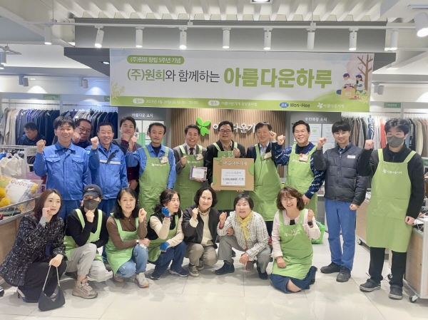 (전남=NSP통신) 강현희 기자 = 원희(대표 김종우)와 아름다운가게 광양중마점은 지난 3월 28일 원희 전 직원과 가족, 광양 시민들이 참여한 아름다운 하루 행사를 개최했다.